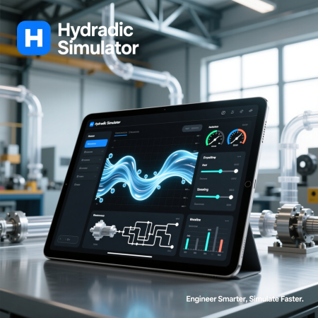 Hydraulic Simulator provides comprehensive tools for designing, analyzing, and testing hydraulic systems. Features include fluid flow calculations, pressure drop analysis, pump and motor sizing, hydraulic circuit design, and system performance optimization. Perfect for mechanical engineers, fluid power specialists, and hydraulic system designers.